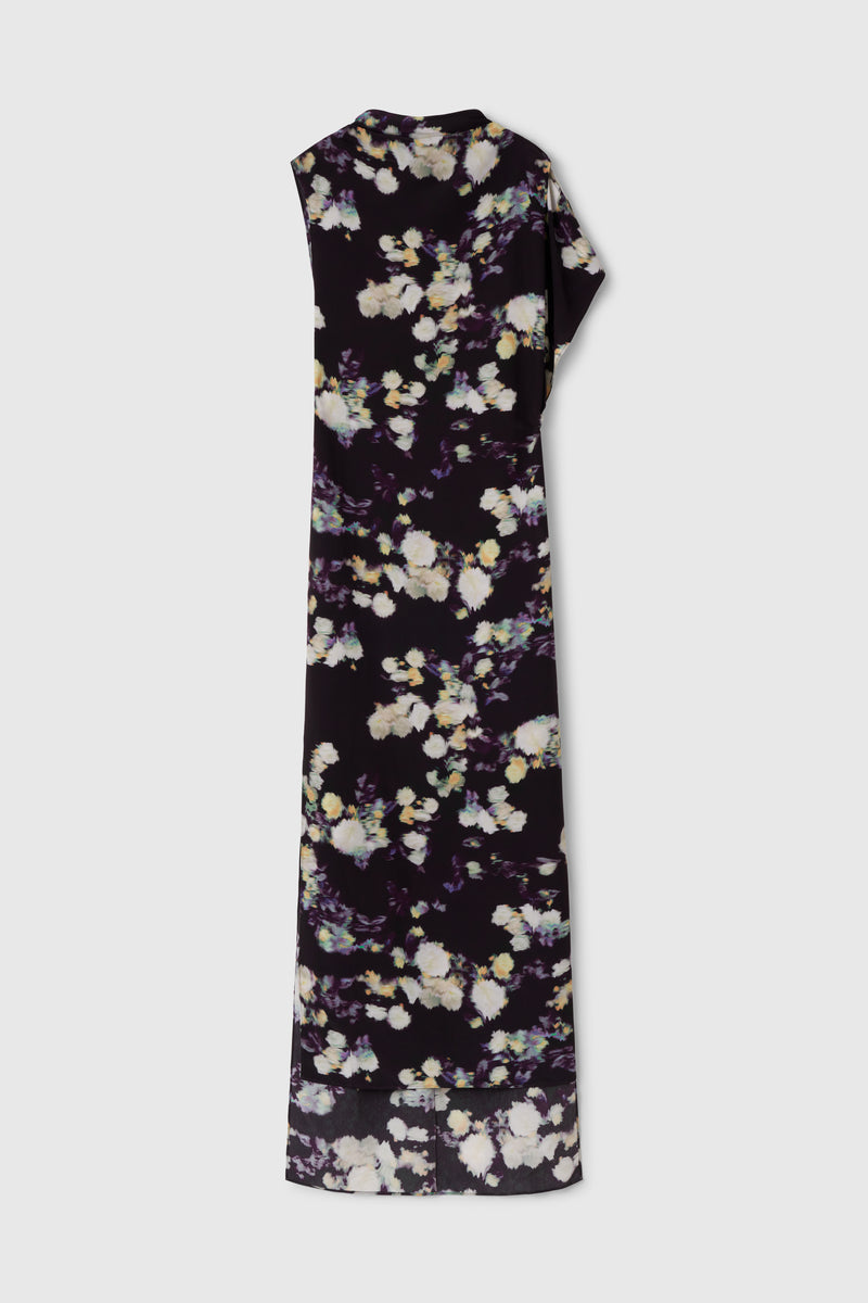 From exhibition openings to celebratory occasions, the Alana dress is sure to fit the mood. Crafted from a blend of silk, this design is shaped with a rounded neckline and asymmetrical sleeves. Its simplistic silhouette creates the perfect canvas for our seasonal Rosie print, and artfully draws attention to its blurred blooms.