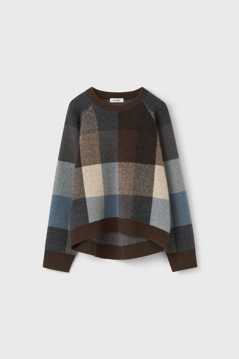 Contrast the season’s painterly blooms and flowing pieces with the checked Anais sweater. Knit from a wool-blend jacquard with a hint of stretch, it is shaped to a classic crewneck sweater with ribbed trims for added comfort.