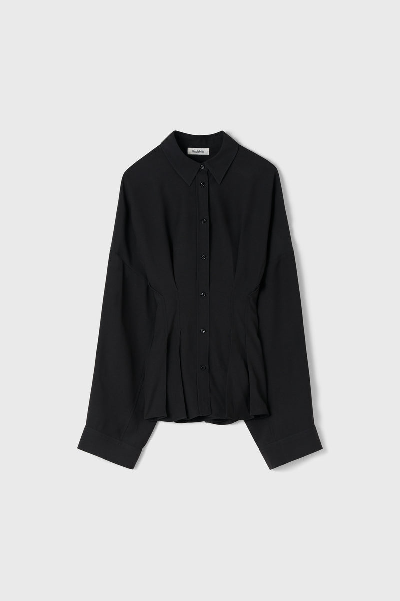 Structured yet soft, the Apollo blouse showcases Rodebjer’s relaxed approach to tailoring codes. Crafted from crêpe de chine, it is detailed with a sharp collar, button-down front, slouchy sleeves, and cinches at the waist. Allow its silhouette to add an expressive touch to pared-back skirts and trousers.