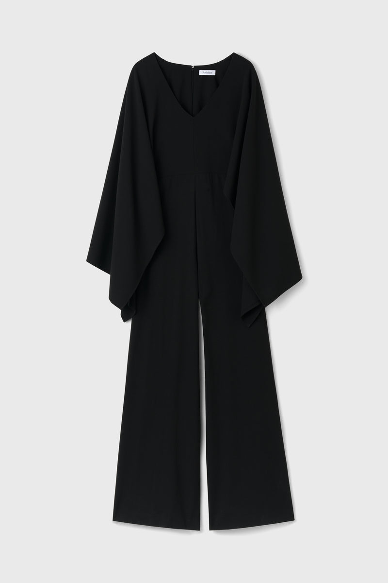 Consider the Drea jumpsuit as the bohemian alternative for formal occasions Crafted from flowing crêpe with an elegant handle, it has a sharp V-neckline and flowing sleeves with a gentle ruffle trim. Pair with the Organic Disc earrings and pointed shoes as you step into occasion season.