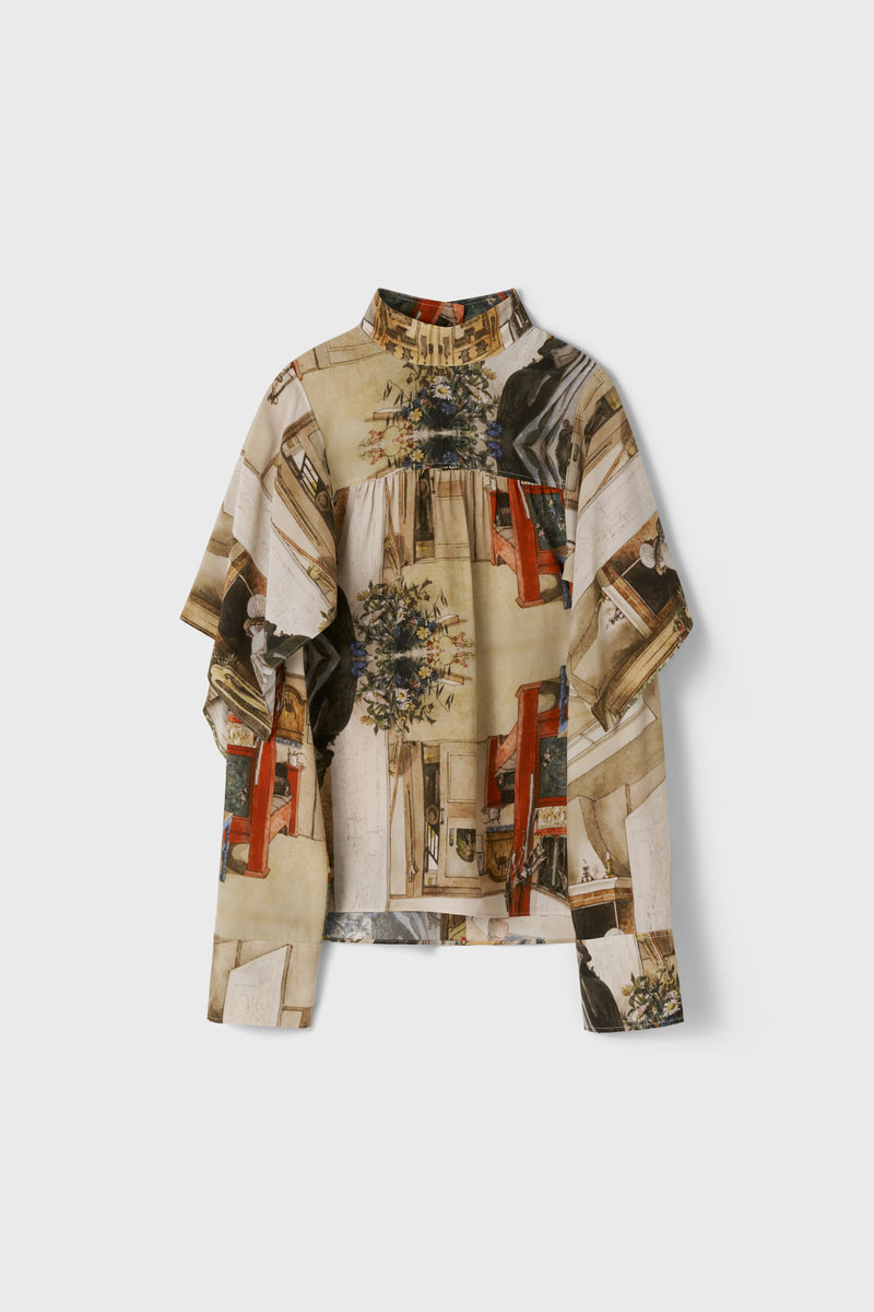 As part of Rodebjer’s Carl Larsson print series, the Era blouse is inspired by a piece worn by Karin Larsson. Illustrated with a motif that pays tribute to the Swedish painter, this silk-blend design is shaped with a chimney collar and flounces at the shoulders.