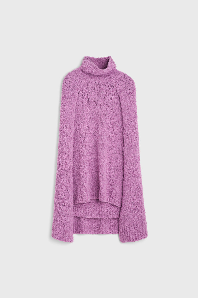 An artful play on proportion, the Evante top is a contemporary interpretation of the cape silhouette. Crafted from bouclé yarn in a certified wool mix, this knit design has a high neckline and sleeveless shape that is ideal for layering. Make yours the focus point of an outfit by styling as a dress.