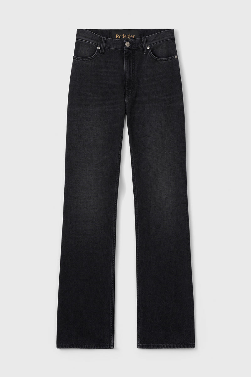 Extended flare is Rodebjer's new denim fit cut in 100% GOTS-certified organic cotton. Designed with a flared leg, the jeans have a high-rise waist and mechanical stretch for increased comfort. They're treated with a vintage wash for a retro, lived-in look.