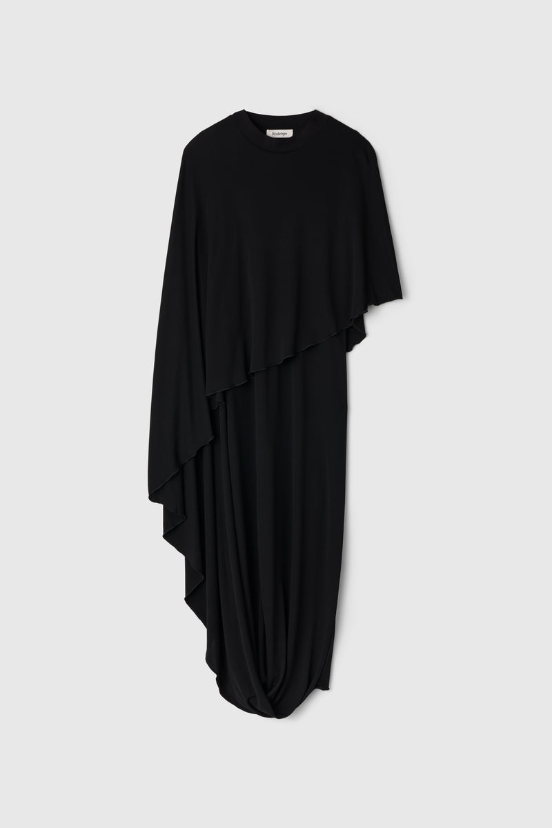 Sculptural in its softness and sophistication, the Kate dress flows down the figure with ease and elegance. Made from a sustainable viscose jersey crêpe, it is shaped with a caped crew neck to an asymmetrical silhouette with a beautiful drape.