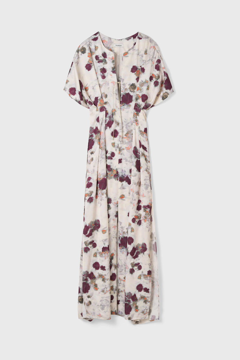 Illustrated with our seasonal Rosie print, the Kimberly dress is made from viscose crêpe de chine with a beautiful handle. Shaped to a relaxed fit, it fastens with an adjustable tie at the front, and is detailed with pleats at the waist. A slit at the front allows you to showcase the new-season Lyla boots.