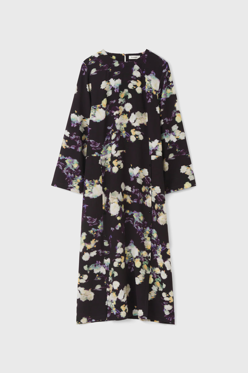 The gentle movement of the Luminosa dress is beautifully mirrored by our seasonal Rosie print. Crafted from viscose crêpe de chine, this voluminous design is shaped with wide sleeves, a round neckline and flows loosely down the figure. For a dose of experimental styling, leave the slits at the sides unbuttoned when layering over wide-leg pants.