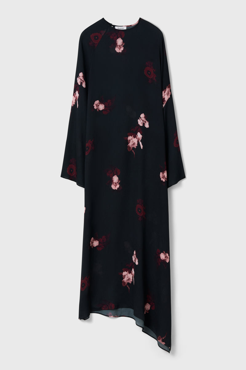 Echoing the painterly blooms seen throughout the FW/25 collection, the Marge dress arrives illustrated in our seasonal Bouquet print. Crafted from sustainable rayon crêpe, this relaxed style has one raglan sleeve and one dropped sleeve, creating an asymmetric silhouette that extends to its hemline. Style yours with soft knit accessories and leather boots.