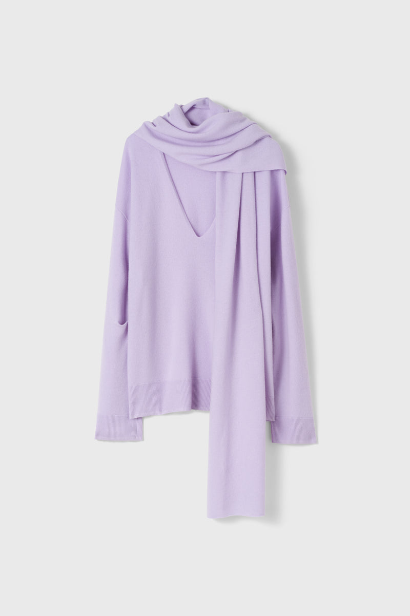 Relaxed yet refined, the Phlox sweater is a wardrobe staple with a sophisticated twist. Knit from 100% certified merino wool, it is shaped with a V-neckline with elongated sleeves and an asymmetrical hemline. It arrives with a detachable scarf for versatile styling.
