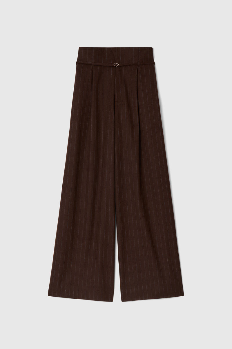 A sophisticated option for the refined eccentric, the Selma pants are ideal for styling with the season’s printed pieces and statement outerwear. Crafted from a recycled wool blend, it is tailored to a paperbag silhouette that falls to wide legs that are highlighted by subtle pinstripes. Its high-rise waist is accented by a Rodebjer signature: the coral buckle, presented here in silver.
