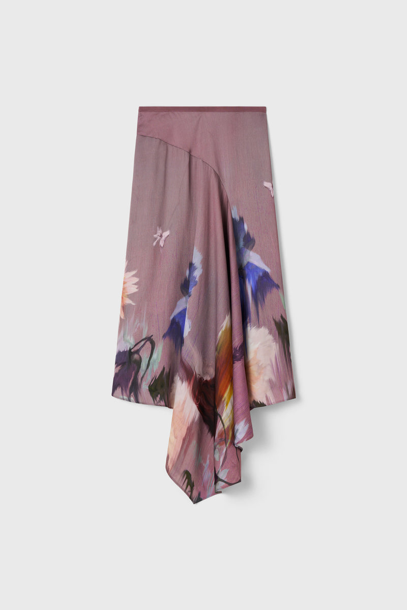 Flowing easily down the figure to gentle folds, and illustrated with artful blooms, the Swoosh skirt imbues Rodebjer’s design DNA. Crafted from viscose crêpe de chine, it is fitted with grosgrain at the waist, and fastens with a zip at the side. Its asymmetrical hemline makes a quiet statement, and moves gently as you do.