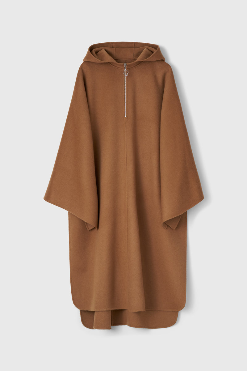 The perfect transitional coverup arrives in the form of the Tammy cape. Crafted from supremely soft double-faced wool, it is detailed with a hood and an embellished zip at the neckline. Throw yours on over flowing dresses and fluid sets as the weather begins to change.