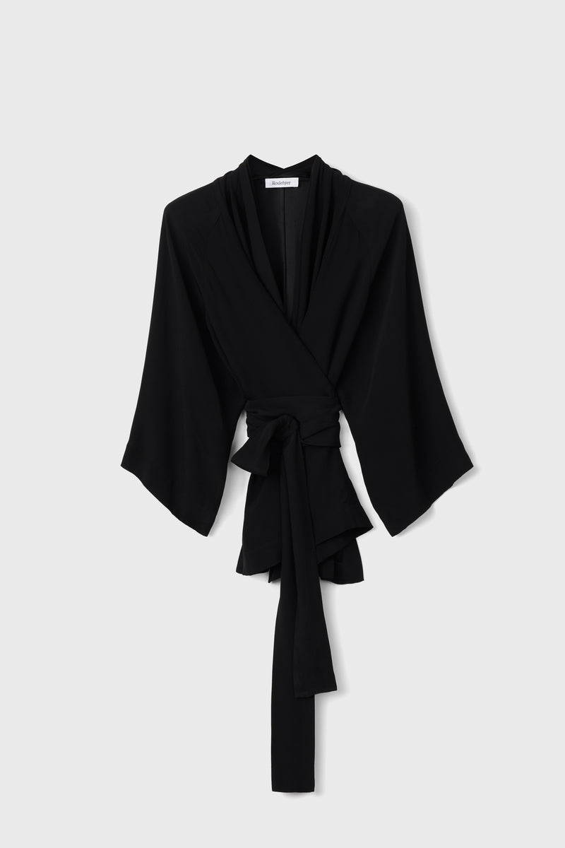 Worn as a layering piece or on its own, the flowing Tennesee wrap blouse adds an artful drape to outfits. It is shaped with oversized sleeves to a wrap design that offers multiple styling options. Side slits add gentle movement to this piece, in keeping with the season’s inspirations.