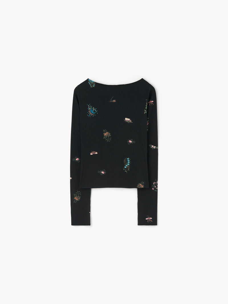 An everyday layering item referencing dance wear. Long sleeve, tight fitting tricot silhouette.