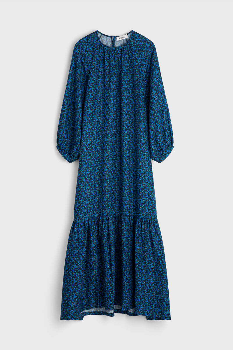 The Wanda dress gives day dressing a decidedly eclectic inflection. Made from cupro twill, it has a voluminous silhouette complete with balloon sleeves and a gathered flounce at the maxi hemline. Allow yours to soften tailored blazers and coats.